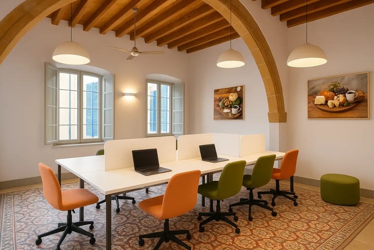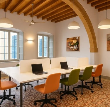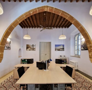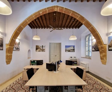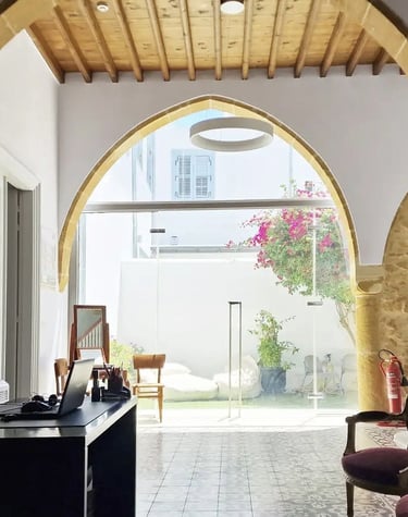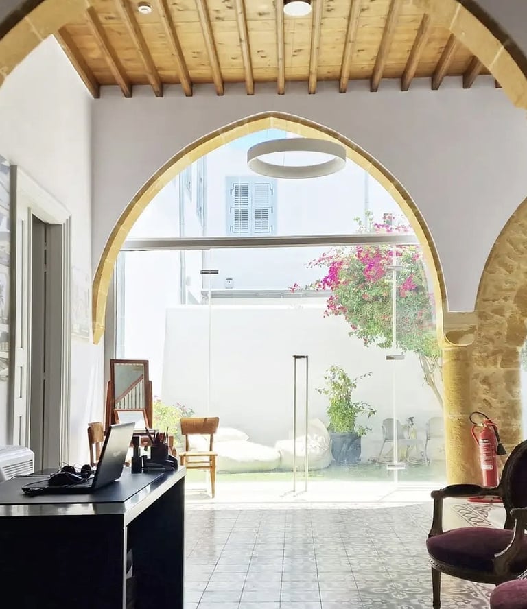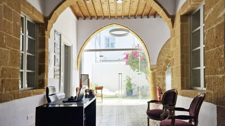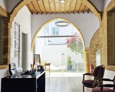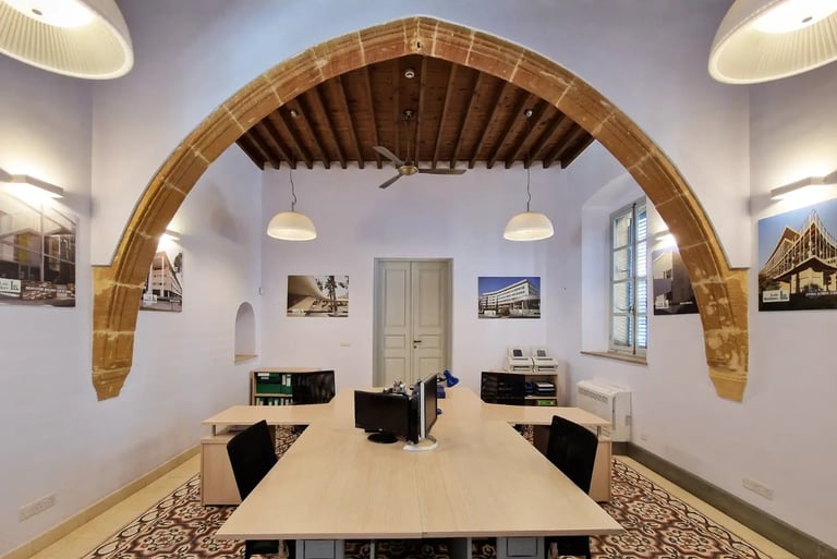 Each space stands out for its uniqueness, elegance, and the refined charm of traditional Cypriot architecture. Our offices and halls harmoniously combine classic design with modern aesthetics, creating an environment that inspires professionalism and creativity.